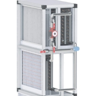 Теплообменник на вытяжном канале служит для получения тепла от вытяжного воздуха и передачи его теплоносителю. Теплоноситель (водный раствор гликоля) циркулирует в трубопроводах, соединяющих два теплообменника. Теплообменник, находящийся в приточном канале выполняет функцию начального нагревателя, передавая тепло воздуху от теплоносителя.